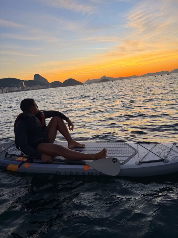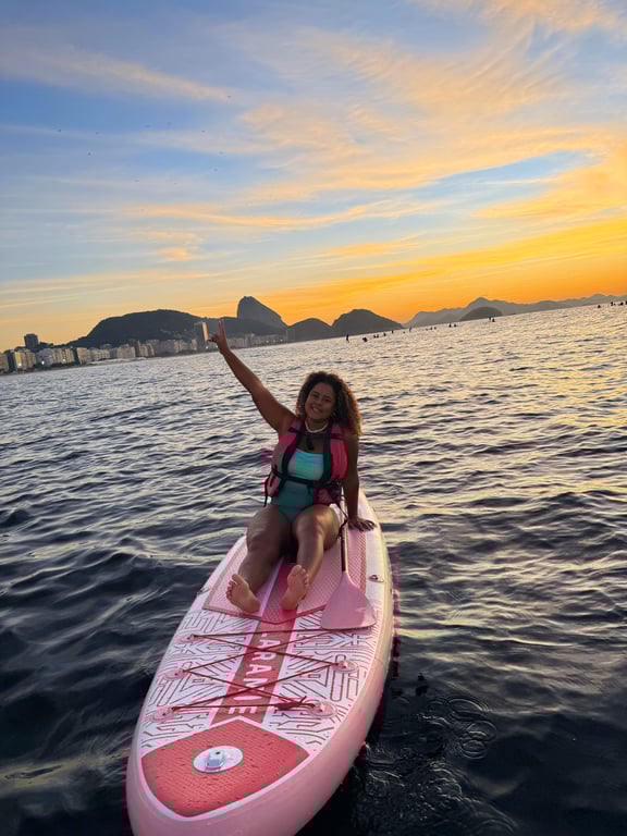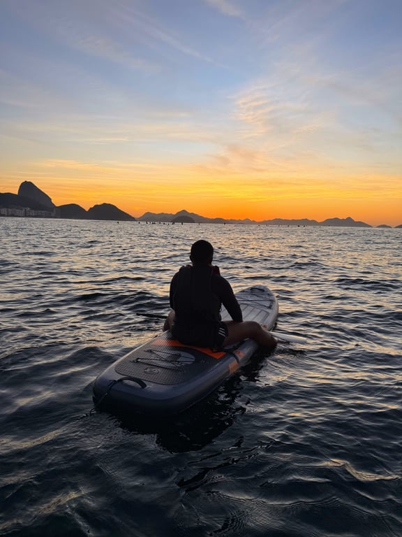 Imagine começar o dia remando sobre as águas calmas de Copacabana enquanto o sol nasce no horizonte.